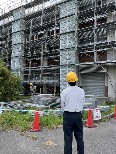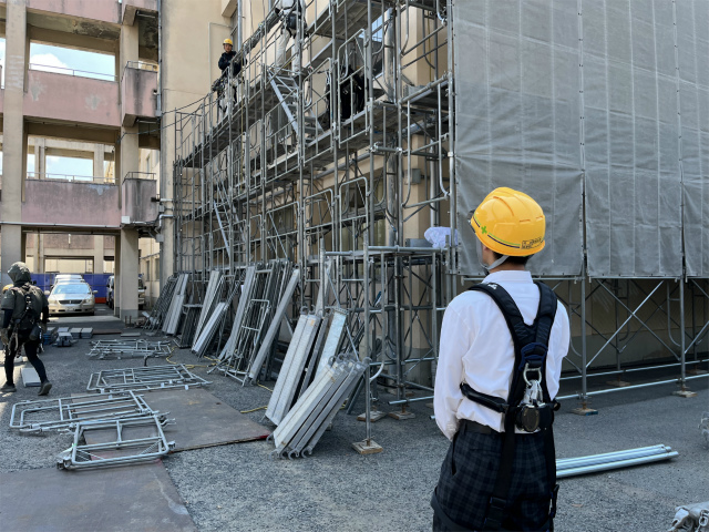 岡山市内の、足場工事の現場を見学していただきました。
