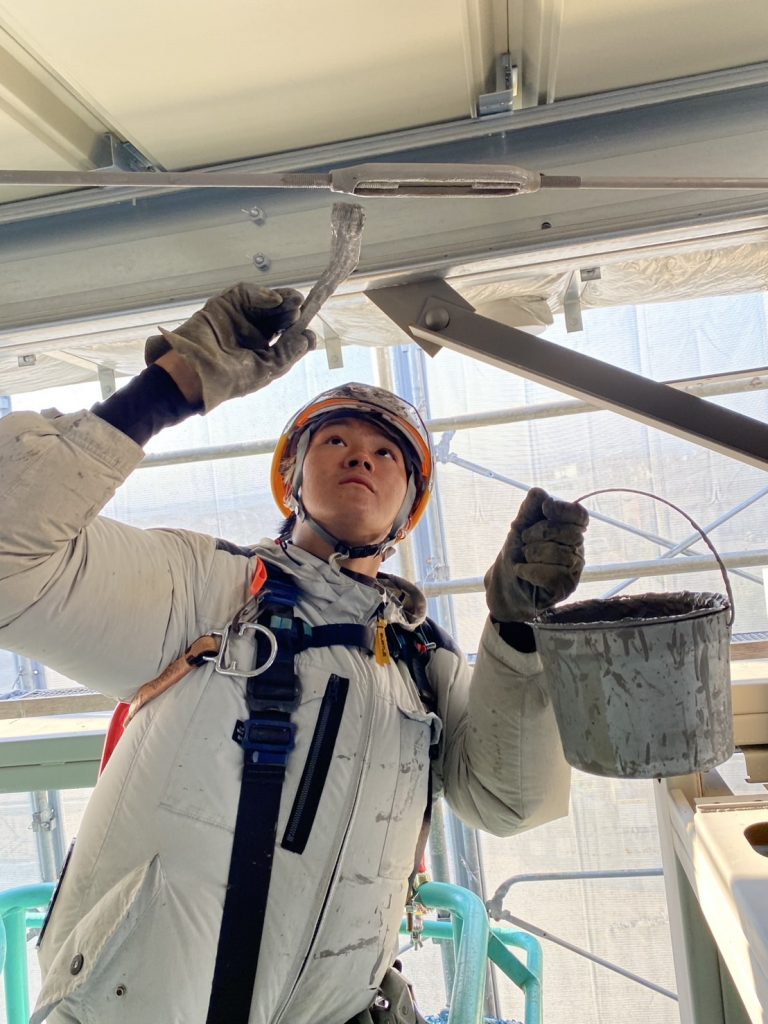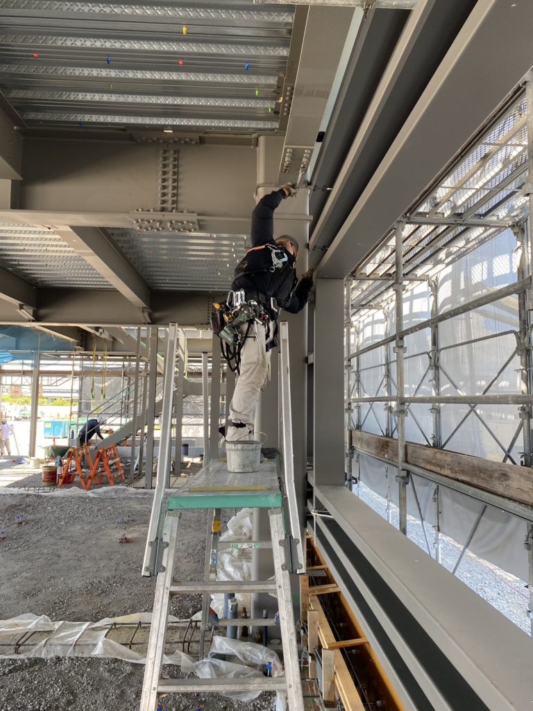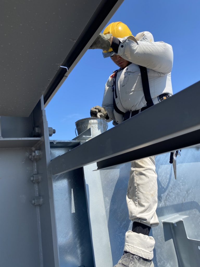 *タッチアップ作業は鉄骨の表面についた傷や塗装が剝がれてしまった部分を